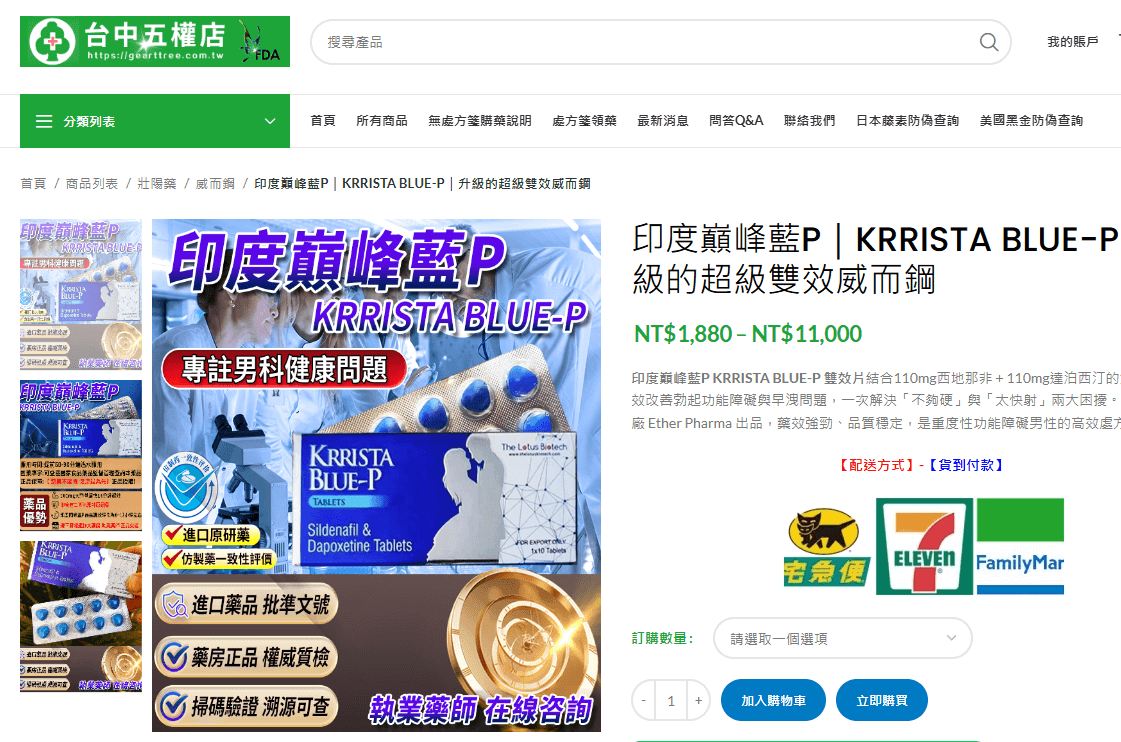 巔峰藍P雙效片(KRRISTA BLUE-P)是由印度 Ether Pharma 製藥公司推出的雙效壯陽藥,結合 110mg 西地那非(Viagra 同成分)與 110mg 達泊西汀(Priligy 同成分),同時治療勃起功能障礙(ED)與早發性射精(PE)。由於藥效強勁,深受中重度性功能障礙男性青睞,但也因需求高、市面假貨流竄,使得「正品巔峰藍P去哪裡買到?」成為最常見問題。
