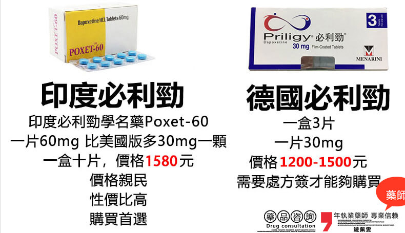 | 原廠 Priligy | 30mg/6顆 | NT$1200–1400 | 醫院/藥局 |