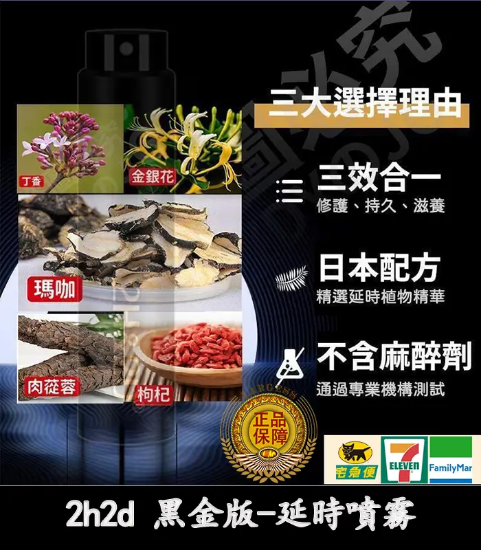 2H&2D 黑金版持久液是日本排名第一的延時性用品,純綠色植物制成,