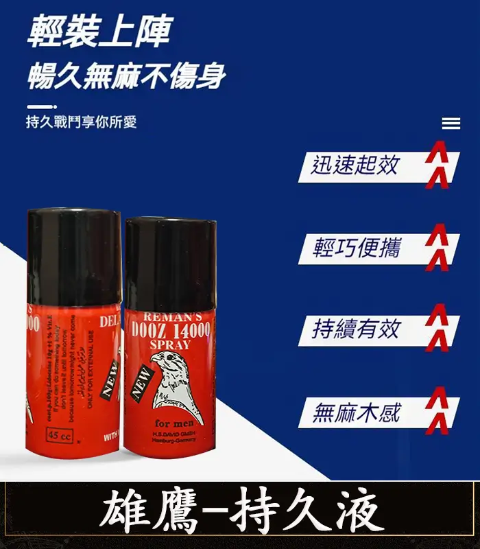 雄鷹持久噴霧屬於男性外用延時噴劑。可有效的緩解男性出現的不硬、時間短、不舉等現象。