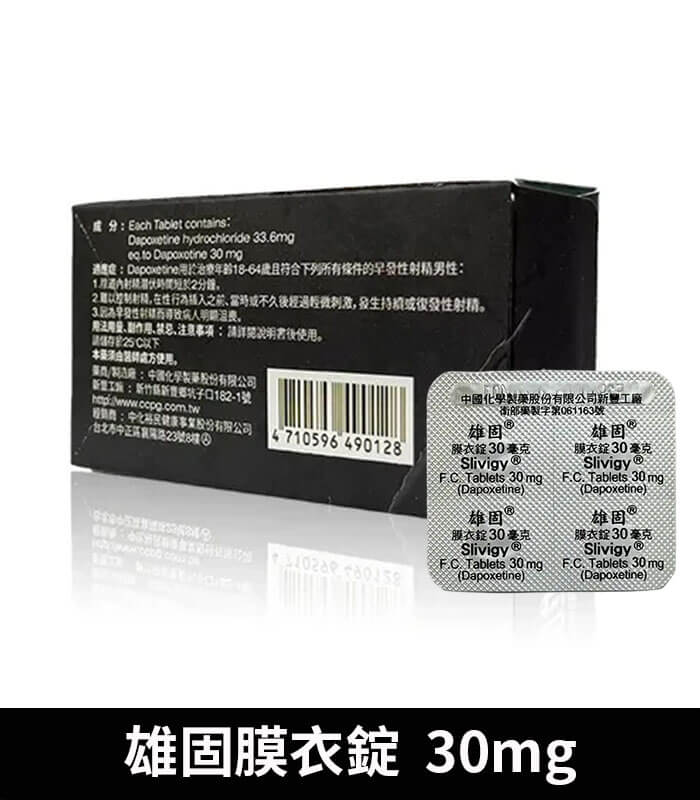 雄固 Slivigy 30mg 是中化藥業精心研發的早洩(PE)治療專用藥,專為那些希望延長性愛時間、擁有更強掌控力的男性設計。作為必利勁的學名藥,這款產品以其卓越的延時效果聞名,幫助男性輕鬆掌握性愛節奏,擺脫早洩困擾,重拾性愛自信。其主要成分達泊西汀(Dapoxetine),能顯著延長性愛時間,讓每一次親密時刻都更加持久、充滿激情。