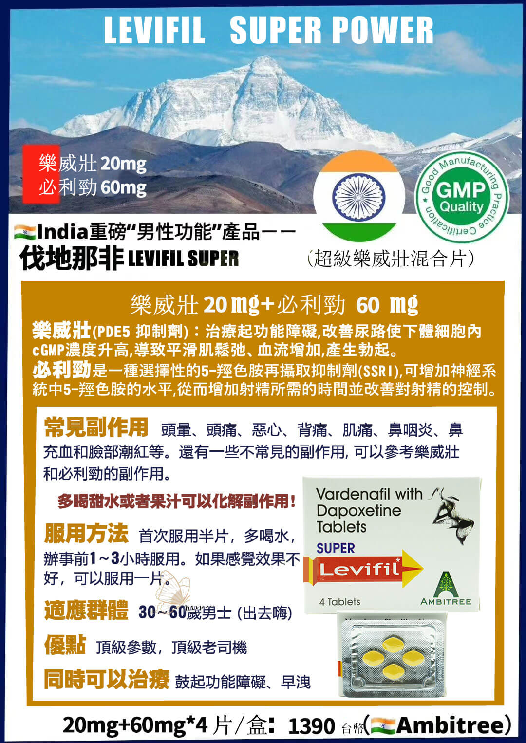 【藥品名稱】: 雙效樂威壯、Super Levifil、超級樂威壯