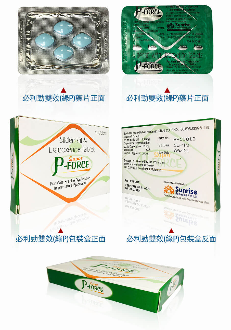 綠版必利吉 Super P-force 是一款結合助勃與延時雙重功效的壯陽藥。它含有100mg的西地那非(Sildenafil)和60mg的達泊西汀(Dapoxetine),這兩種成分能夠有效解決勃起功能障礙(ED)和早洩(PE)的問題,是一款集增硬、持久和延時於一體的雙效藥物,深受全球男性用戶的青睞。