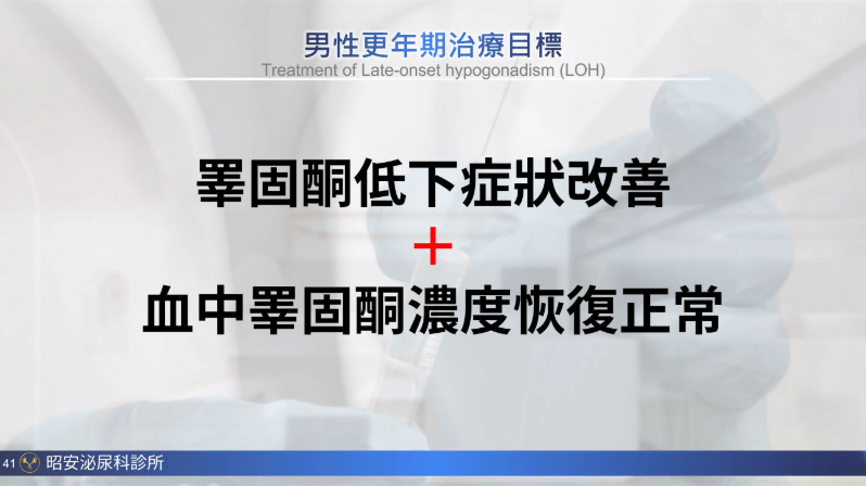 適用於男性因睪酮不足所引起的各種症狀,包括: